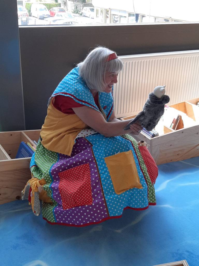 Ik kom als Kaatje Stip bij u in de bibliotheek, gezellig in de voorleeshoek. Voor kinderen in de leeftijd van 4 tot en met 7 jaar. Met een rok vol poppenkastpoppen.
